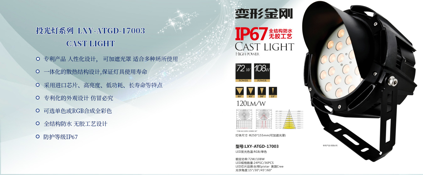使用燈具:LXY-AXQD18001投光燈